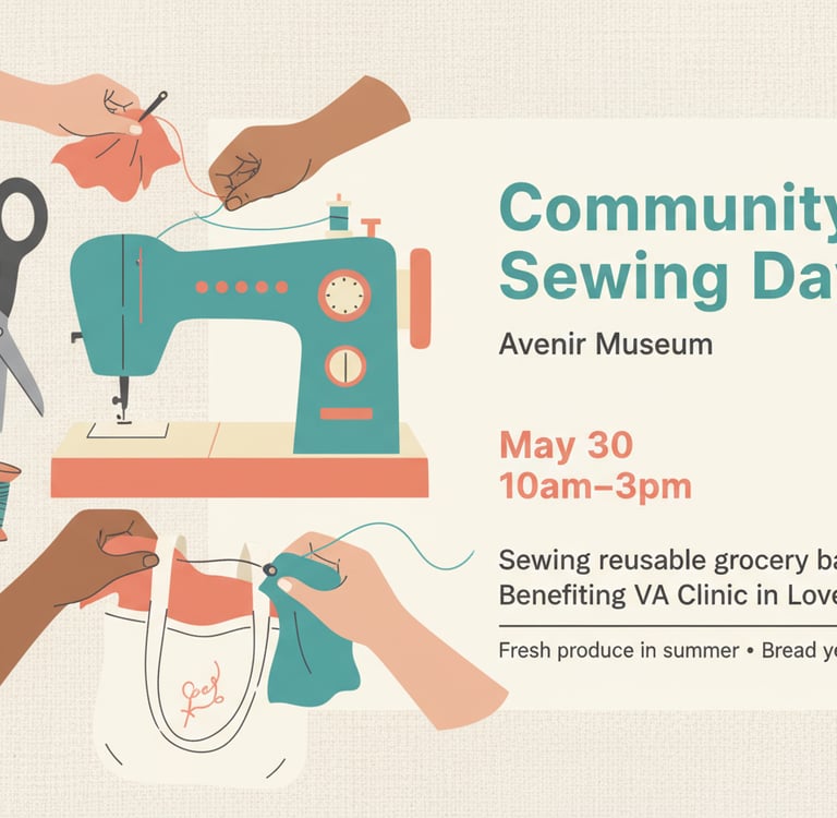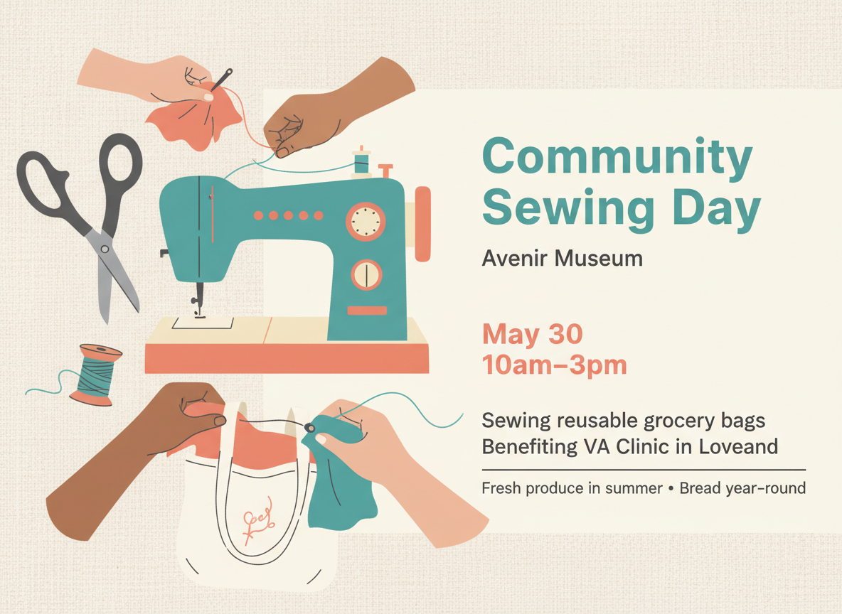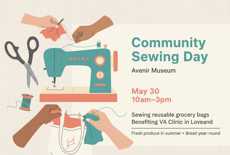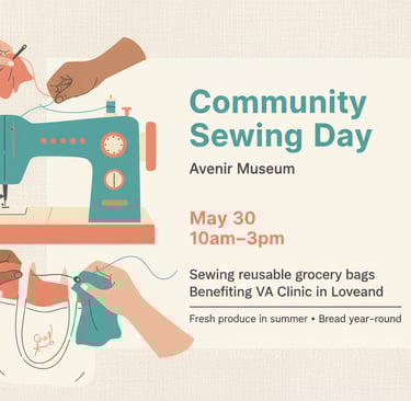 We're excited to partner again with the Avenir Museum to create something special for our community. This time, we’ll be making grocery bags for the Veterans Affairs clinic in Loveland, where they distribute fresh produce during the summer and bread year-round to local veterans.